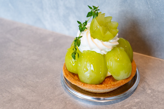 サクサクのタルトにアーモンドクリーム、フレッシュなマスカットを使ったフルーツタルトです。