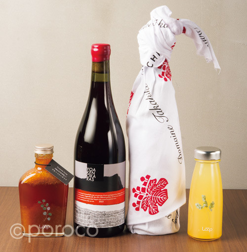 余市産ツヴァイゲルトレーベ100%使用の「YOAKENOKARAS」5,280円など。手みやげにもオススメ。