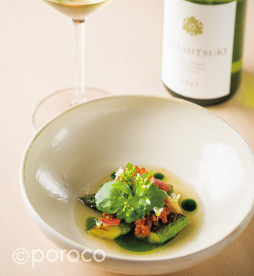 厳選した最良の食材を使用し、多彩なアイデアや素材の組み合わせの妙、繊細で美しい盛り付けで独特の世界観を表現している。自社ワイナリーのワインをはじめ、余市産や仁木産の希少なワインが揃っていて、コースに合わせたペアリングも提案。ソムリエの倉富宗さんの分かりやすい解説も好評なので、気軽に問い合わせてみて。