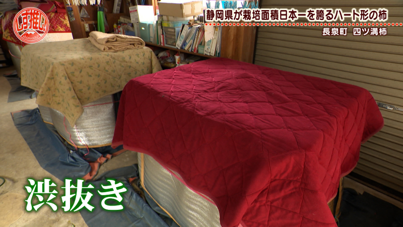 収穫したての柿は、容器に入れ、炭酸ガスで充満させて3日間置くことで渋が抜けます。