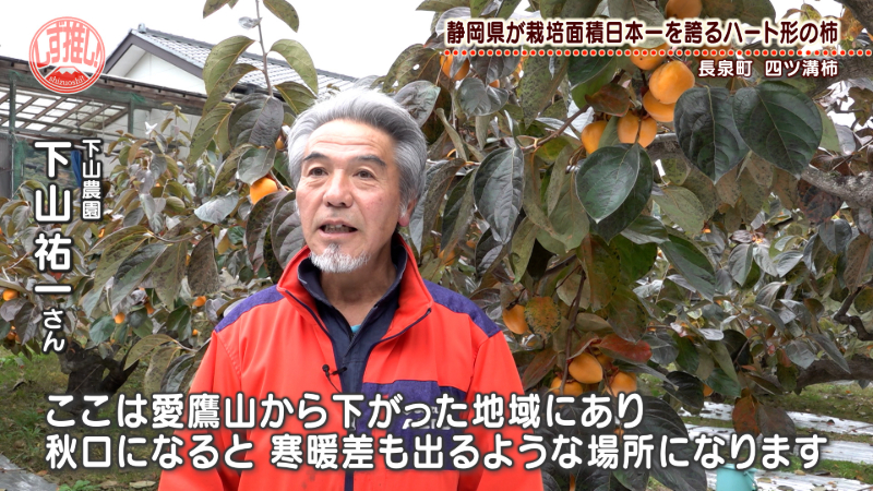 長泉町元長窪にある「下山農園」で育てている『四ツ溝柿』は愛鷹山麓原産といわれていて、静岡県が栽培面積日本一を誇ります。