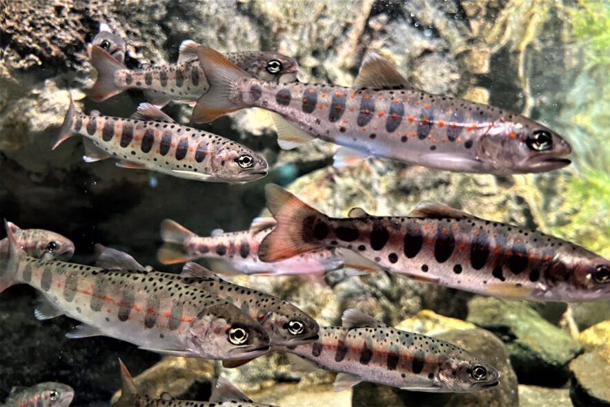 天然のアマゴも生息していますが、環境省レッドリスト2020で準絶滅危惧(NT)に指定されるほど減少。岡山県では、絶滅危惧I類に指定されています。