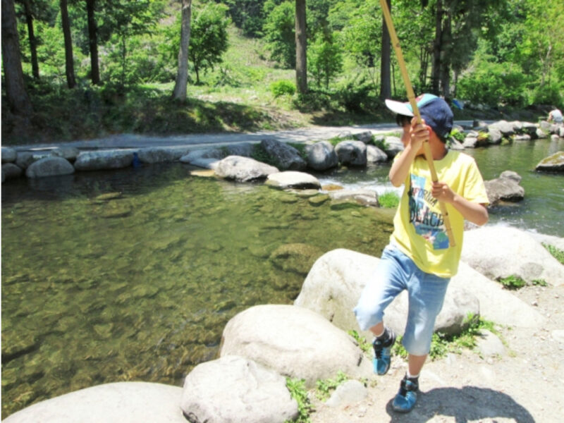 渓流釣りは初心者にはやや難しいですが、養殖釣り堀だと安全に楽しめるほか、釣った魚を焼いて食べられるので、子どものテンションもMax! もちろん、友人同士やカップルも楽しめますよ。