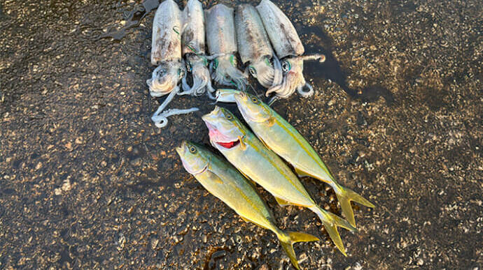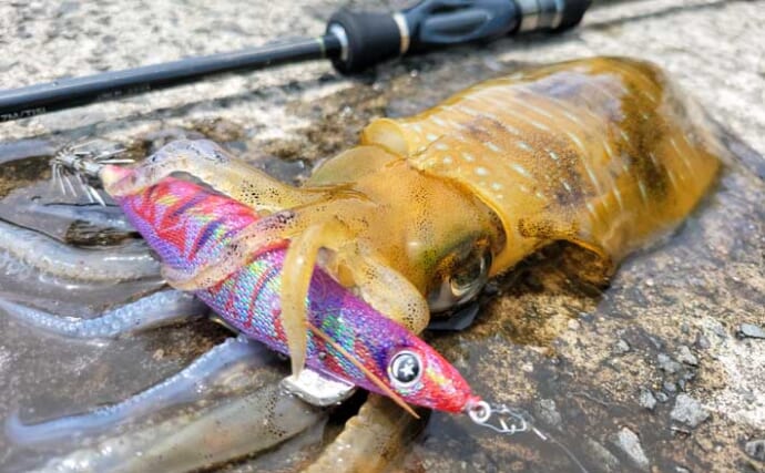 そのため日中はイカの追尾が少ないが、それでも青物が入ってこないような浅場や湾内、漁港の奥などをていねいに狙っていくと、ほかのエリアよりひと回り大きなサイズが釣れる。