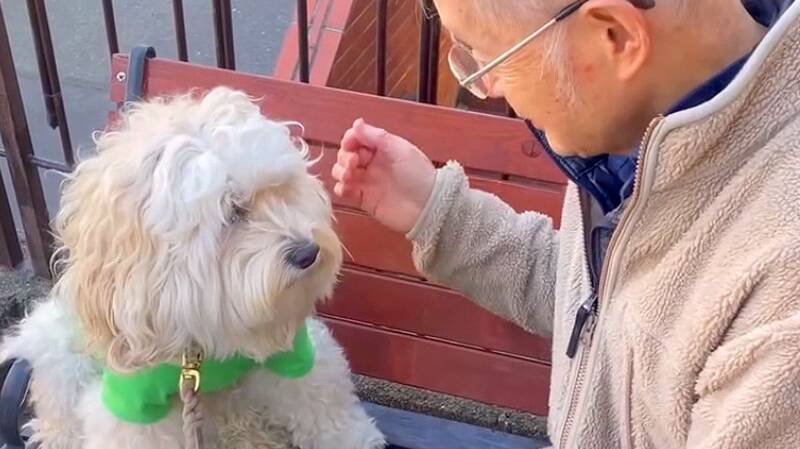 やっぱりおっちゃんと相思相愛…♡そう思った次の瞬間「こんにちはー」と別のお兄さんから声が。地面に転がる可愛いゆずくんを見てついつい声をかけてしまったのだとか。