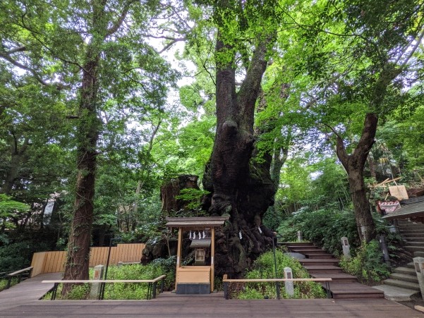 国指定天然記念物に選定されているご神木「大楠」は樹齢2100年を超え、2022度の環境省の調査で、全国2位の巨樹の認定を受けた。強力なパワースポットとして知られる大樹の下には、「願いを叶える力が宿る」として多くの参拝者が訪れる。