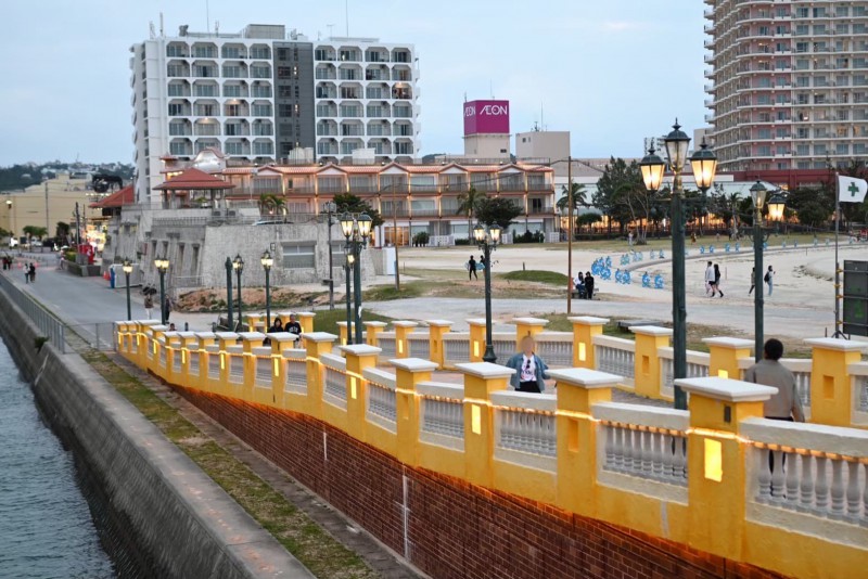 アメリカンビレッジのすぐ隣には『サンセットビーチ』があり、夕方頃になると辺りはだんだんノスタルジックな雰囲気に…。