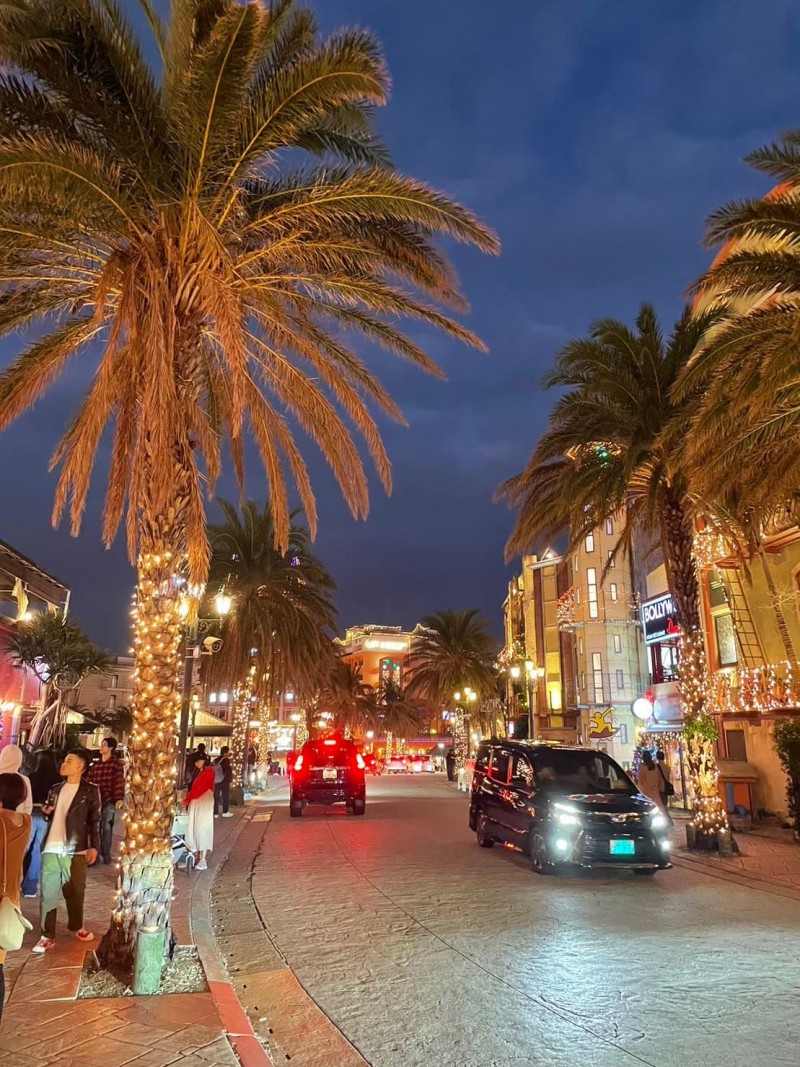 アメリカ西海岸をイメージした街並みで、カラフルな建物やネオン看板、レトロなアメ車がずらりと並び、どこを切り取ってもフォトジェニック!