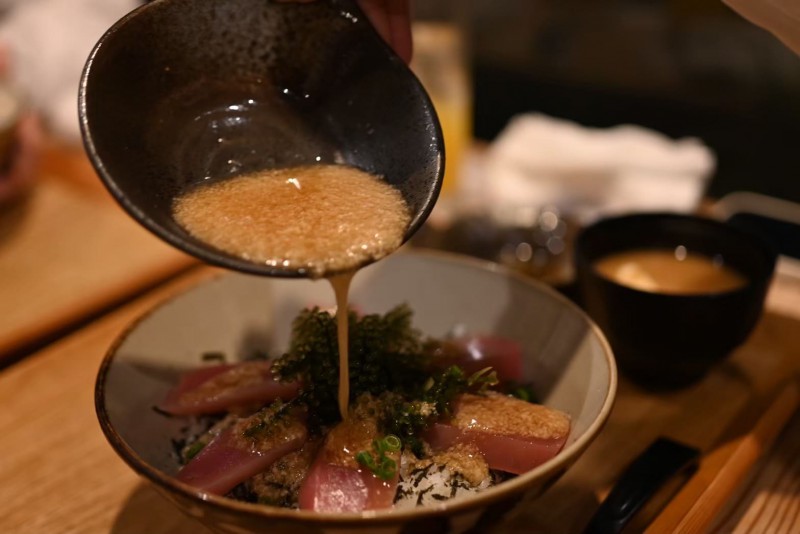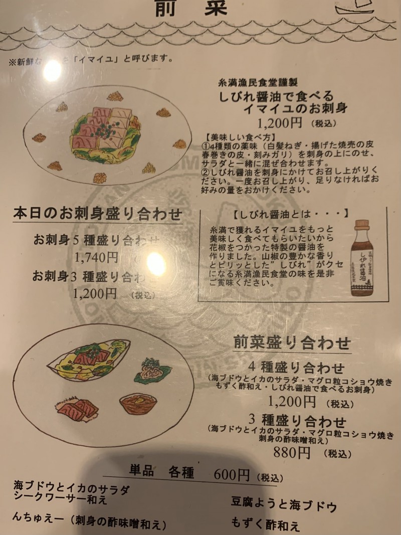 イマイユ(新鮮な魚のこと)を、お店オリジナルの“しびれ醤油”(花椒入りの醤油)でいただくのが最高に美味しい!