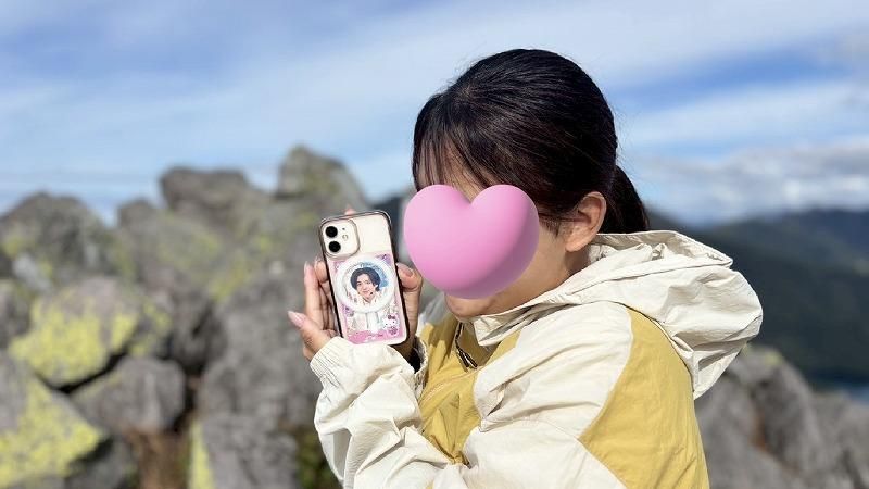 好きなアイドルの写真を携帯に挟んで「一緒に登頂できてうれしい!」と喜んでいたり…