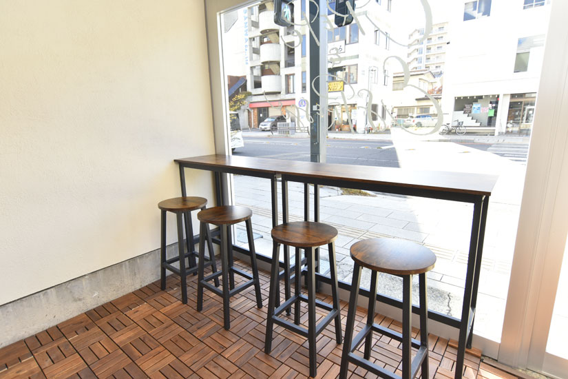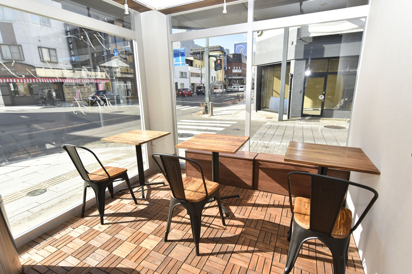 カフェ空間は、テーブル席とカウンター席を設置。いずれも窓際にあり、松本の街並みを眺めながらゆっくりとイートインできます。