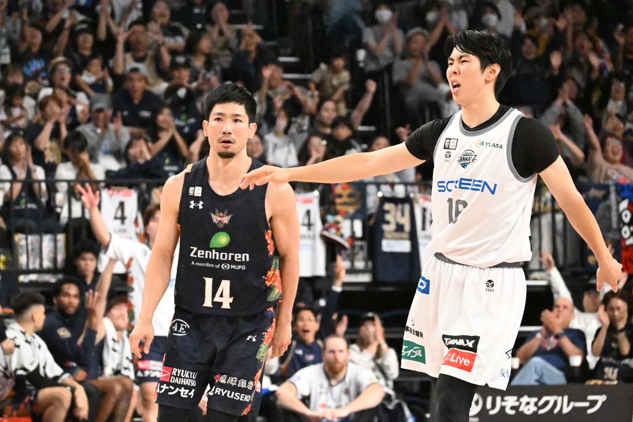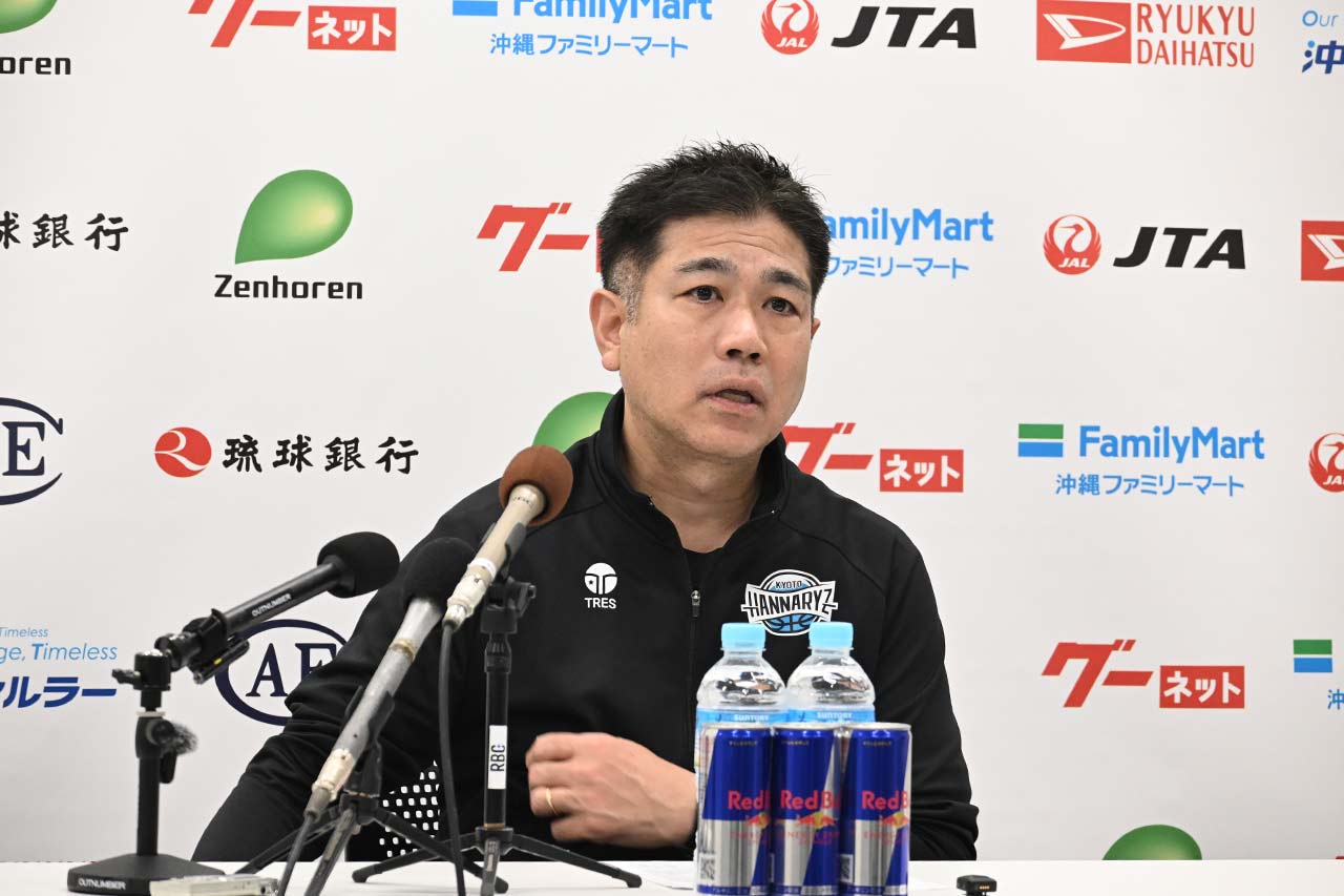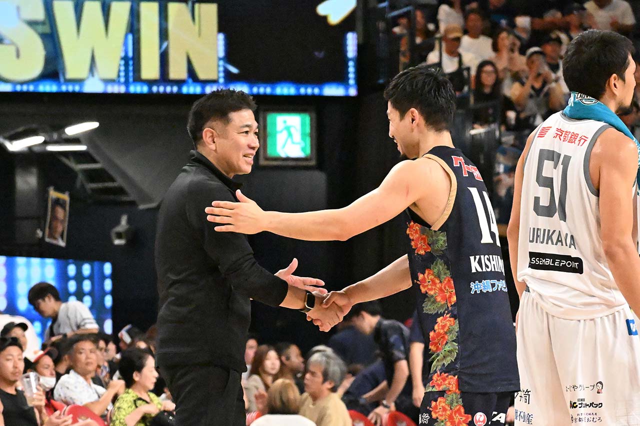 Bリーグ開幕初年度を終えた後の2017年にキングスを退団して沖縄を離れ、約8年が経つ。決して短い期間ではない。それでも、今も地元のチームであるキングスについては「変な言い方ですけど、気になってますし、応援もしてます」と率直に語る。 盟友であるキングスの桶谷大HCとは普段から食事に行く深い仲であり、今回の連戦も「桶さんとの対戦をすごく楽しみにしていました」と言う。 同じくキングス時代に共闘した岸本は、35歳となった今もチームを先頭で引っ張る。岸本についての評価を聞かれると、どこか嬉しそうな笑みを浮かべながら賛辞を送った。 「彼にも、周りの人にも言ってますけど、年々うまくなっています。リーグを代表するいい選手になったと思います。もともとスキルはあったけど、歳を重ねるごとにメンタルが整ってきて、ブレない。本当に35歳ですかね。何かいい薬でも飲んでるのかなと思うぐらい動き回りますけど(笑)。素晴らしいパフォーマンスだと思います」 岸本や渡辺に加え、並里成(ファイティングイーグルス名古屋)や津山尚大(川崎ブレイブサンダース)など、自身と共に戦ったことのある沖縄出身選手がB1で活躍している。「彼らの活躍はすごく励みになっていますので、負けないように頑張りたいと思います」と力に変える。 2日間に渡って登壇した試合後会見の最後を締めくくったコメントも、印象的、かつ、力強かった。 「私は今京都にいるので、京都を盛り上げて、またこのキングスのアリーナで試合できるようにしたいです。一番は、ファイナルで戦えたら一番いい。京都と沖縄の両方が盛り上がればいいなと思います」 新天地での覚悟と、沖縄への変わらない愛情。その両方を胸に、挑戦を続ける「むーさん」。これからも、沖縄から熱いエールを送りたい。