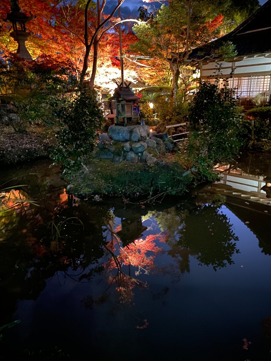 7.【等彌神社|桜井市】夜の幻想的な「逆さ紅葉」が美しい古社