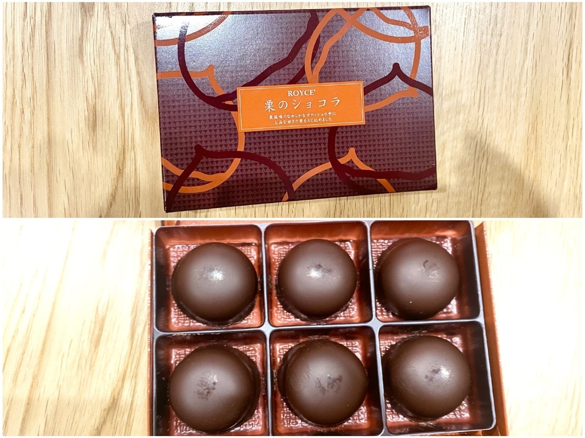 箱を開けると、栗を思わせるようなコロンッとまあるいチョコが6つ並んでいます。