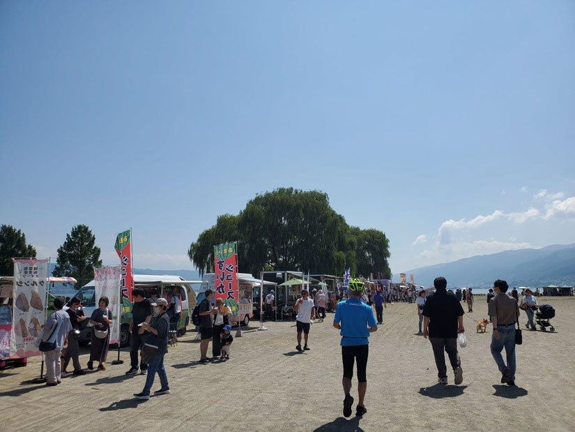 岡谷商工会議所がキッチンカーでの新規創業に関する支援からスタートさせた同イベント。諏訪湖沿いにある「岡谷湖畔公園」を活用して、キッチンカーやブース出店販売のイベントを開催することで岡谷市の地域活性化を目指し企画・開催されています。
