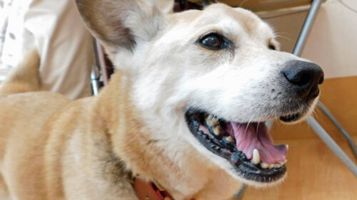 お姉さんがぎゅっと抱きつくようにして体をおさえながら、「座れ、座れ」と声をかけ続けていると、ようやくじゃれつくのを止めてくれたつな君。しかしお姉さんがお腹を撫でてなだめている間も、しっぽをブンブン振りながら思い切り首を捻って、「お顔をペロペロしたいな~」とチャンスをうかがっているようだったとか。