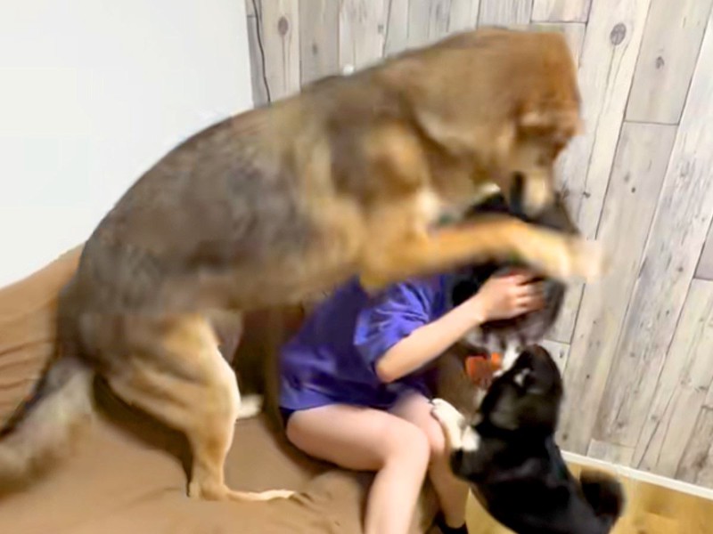 ウルフドッグは人間の大人と同じくらい体が大きいため、つな君の重みに耐えきれずに「わ~っ」と悲鳴を上げるお姉さん。それでもつな君は悪びれることなく、今度は正面からお姉さんにじゃれついたとか。