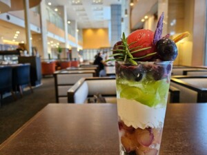 ANAクラウンプラザホテル米子「アトリウムラウンジ」で提供される475パフェは、旬のフルーツと地元食材を贅沢に使用したオリジナル仕立て。
