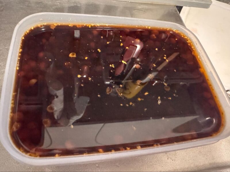 冷蔵庫で一晩寝かせれば、自家製イクラの完成です。