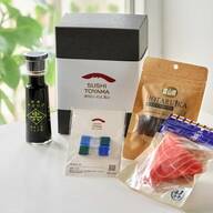 赤えび塩炙り1貫、甘海老にぎり2貫、つぶ貝2貫、えんがわ2貫、サラダ軍艦2貫、ちょこっとジューシーとり唐揚げ、玉ねぎと油揚げの味噌汁の7皿。