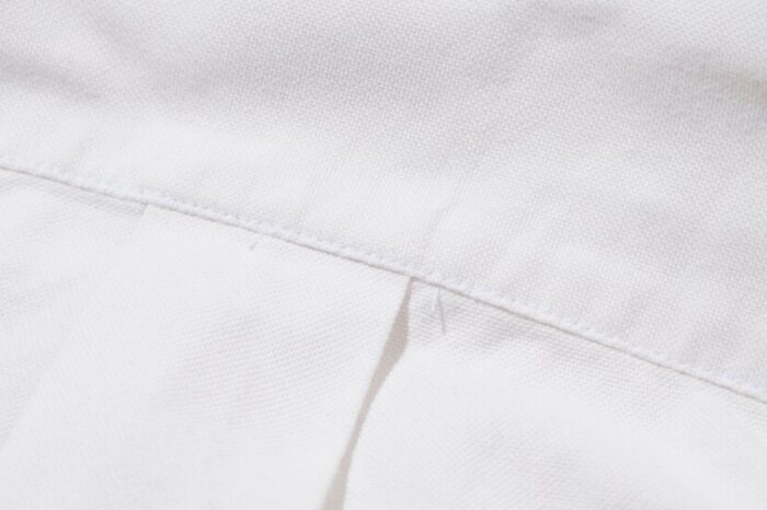 縫い目が見えない袋縫いを採用している「インディビジュアライズドシャツ」が、「ブルックス ブラザーズ」が採用する縫い目が見える方式を取り入れたステッチ