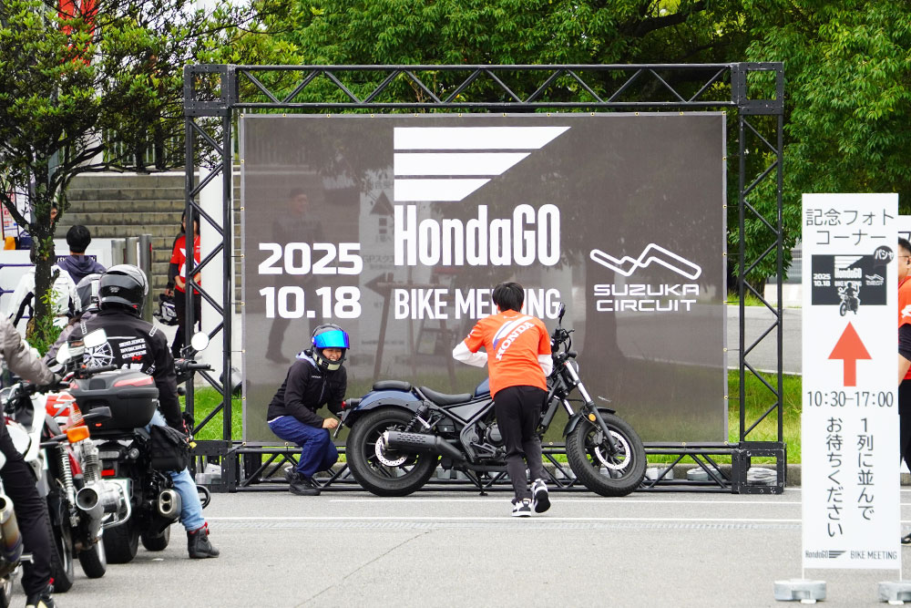 2023年の初開催以来となる鈴鹿サーキットでの「HondaGO BIKE MEETING」。当日は、ゲートオープン前から雨が降ったり止んだりするあいにくの天候でしたが、約2,200人もの来場者で賑わいました。モビリティリゾートもてぎ(栃木県茂木町)で開催された前回の約2倍の動員となり、会場は違いますがホンダのファン感謝イベントとして認知されてきたという印象を受けました。