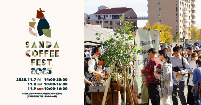 11月7日から9日まで、三田カルチャータウン地区センター駐車場(三田市)で「Sanda Coffee Fest. 2025」が開催されます。「コーヒー ✕ 植物」という独自の世界観を持つコーヒーフェスで、昨年2,500人を動員し、今年は開催期間を3日間に拡大。