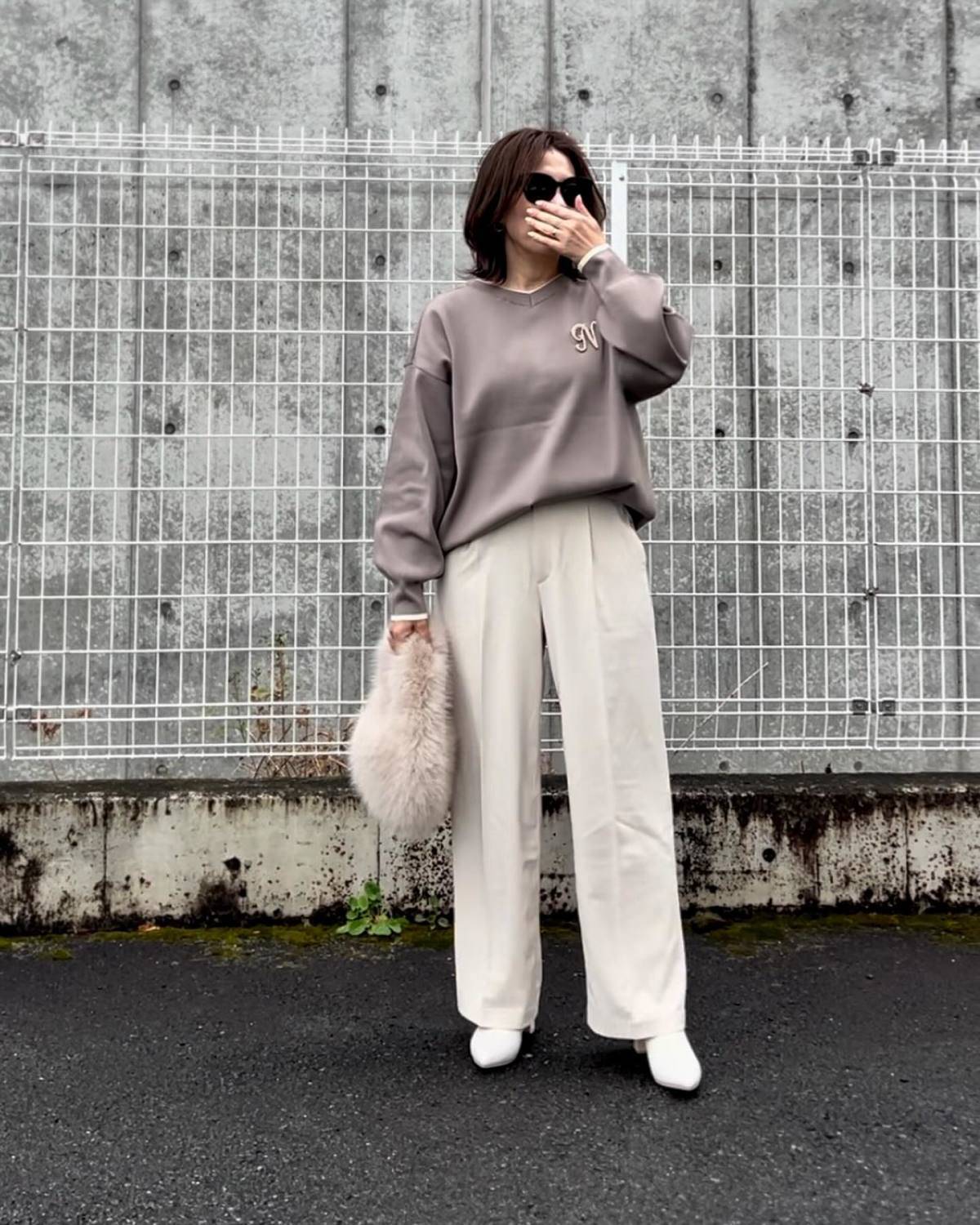 【11月編】センスいいワイドパンツコーデ④オールホワイトコーデ