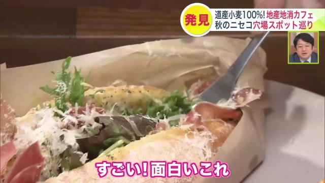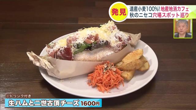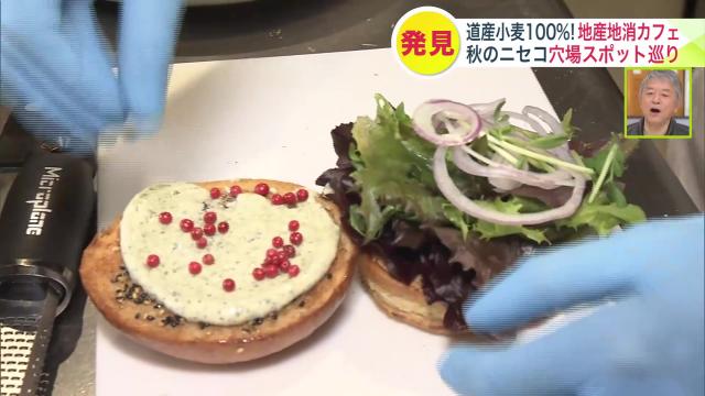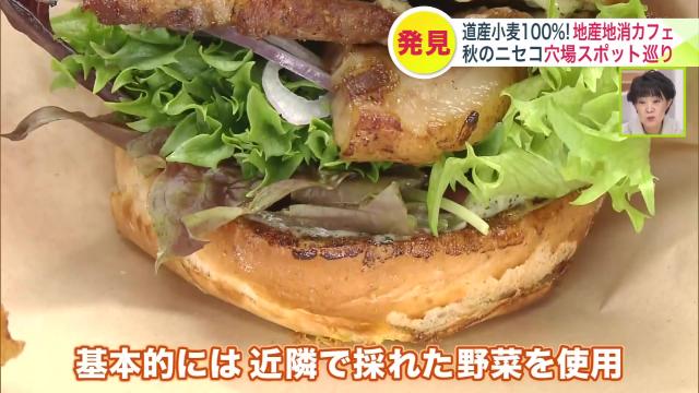 道産小麦100%のパンで作るバーガーやバゲットに、ルスツ豚のローストポークや地元工房のチーズなど、地元食材を使用したランチが味わえます。
