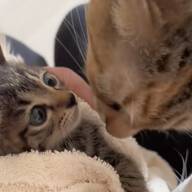 おうちに迎えられた初日、ずっと隠れていた保護子猫→3時間後…『予想外の行動』に感動の声「優しい人だと分かったんだね」「ありがとう」