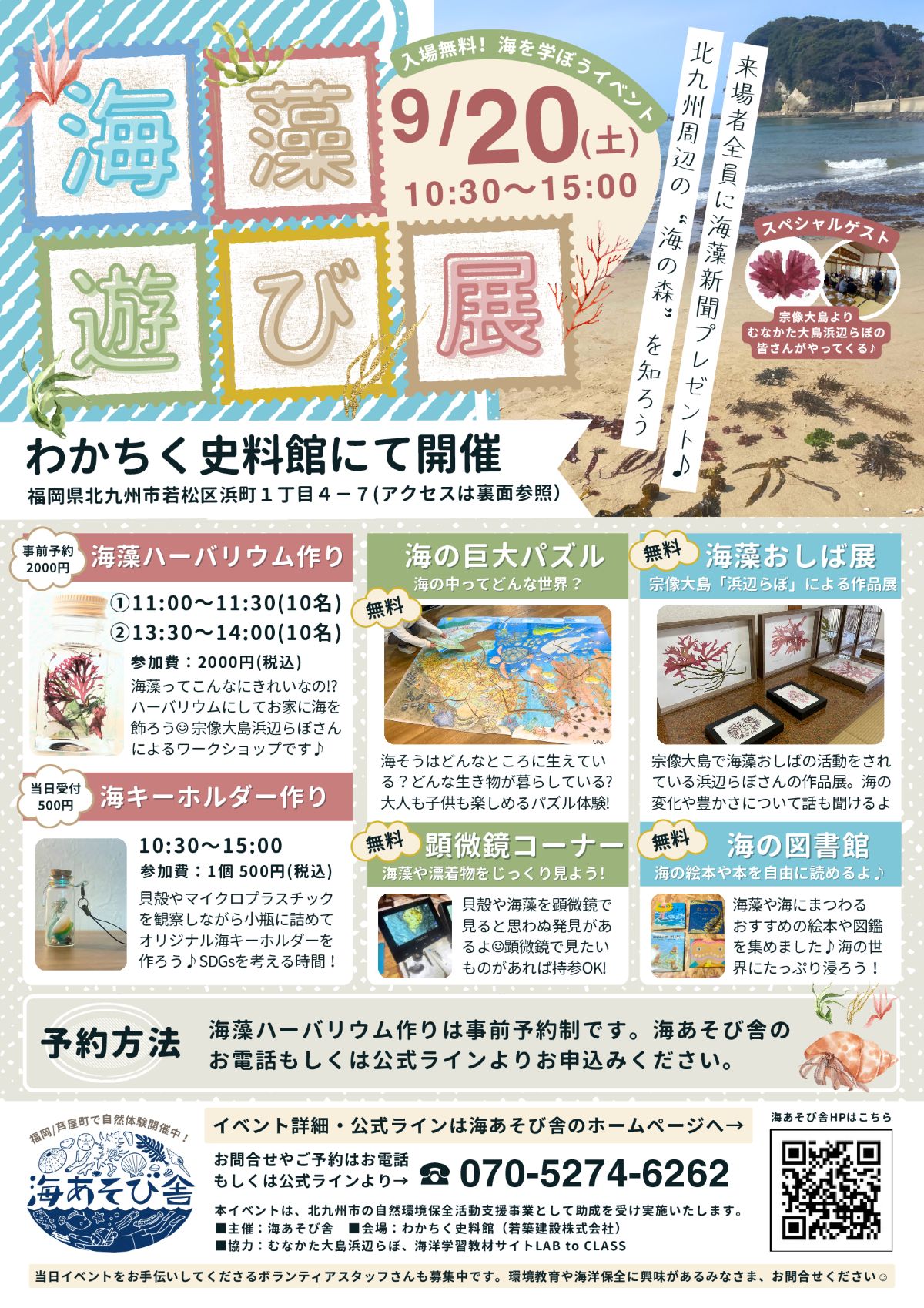 わかちく史料館(北九州市若松区浜町1‐4-7)で9月20日、豊かな海にはかかせない海藻について楽しみながら学べるイベント「海藻遊び展」が開催されます。時間は、午前10時30分~午後3時まで。