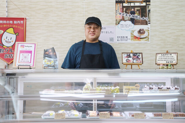 カレー笹団子やたぬきケーキが楽しめる、胎内の「卯月堂菓子舗」。