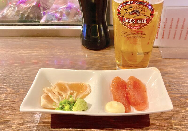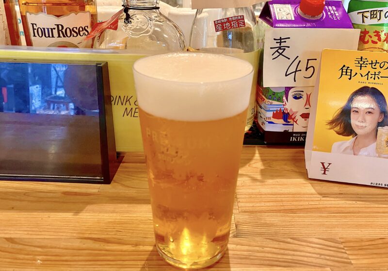 カウンターに着くやいなや、高らかに「とりあえず生!」をコール。グビグビと喉に流し込めば、乾いた砂漠に水が染み込むがごとく、五臓六腑に染みわたる。しかも、嬉しいことに開店から19時までハッピーアワー(土日祝日は15〜18時)で、生ビールやレモンサワーが半額だ。