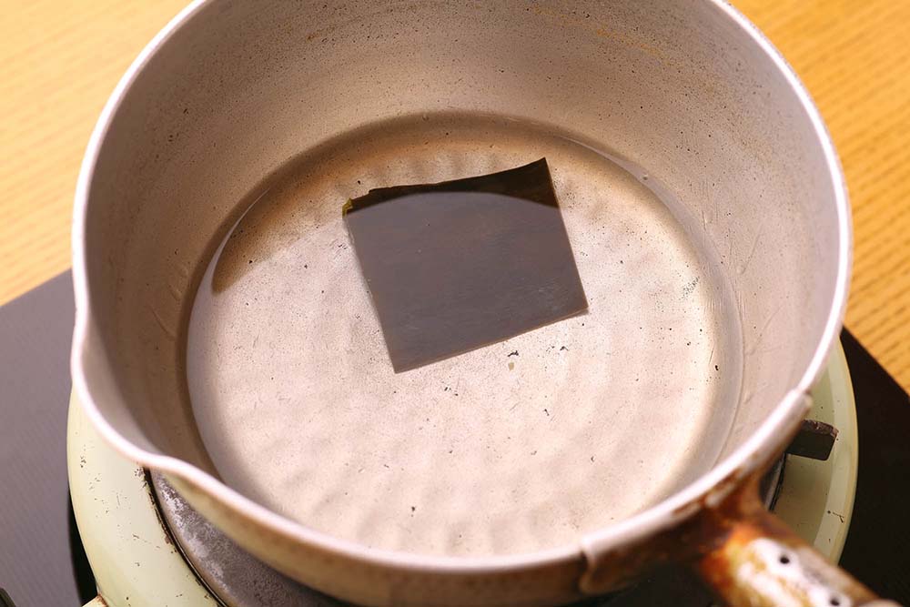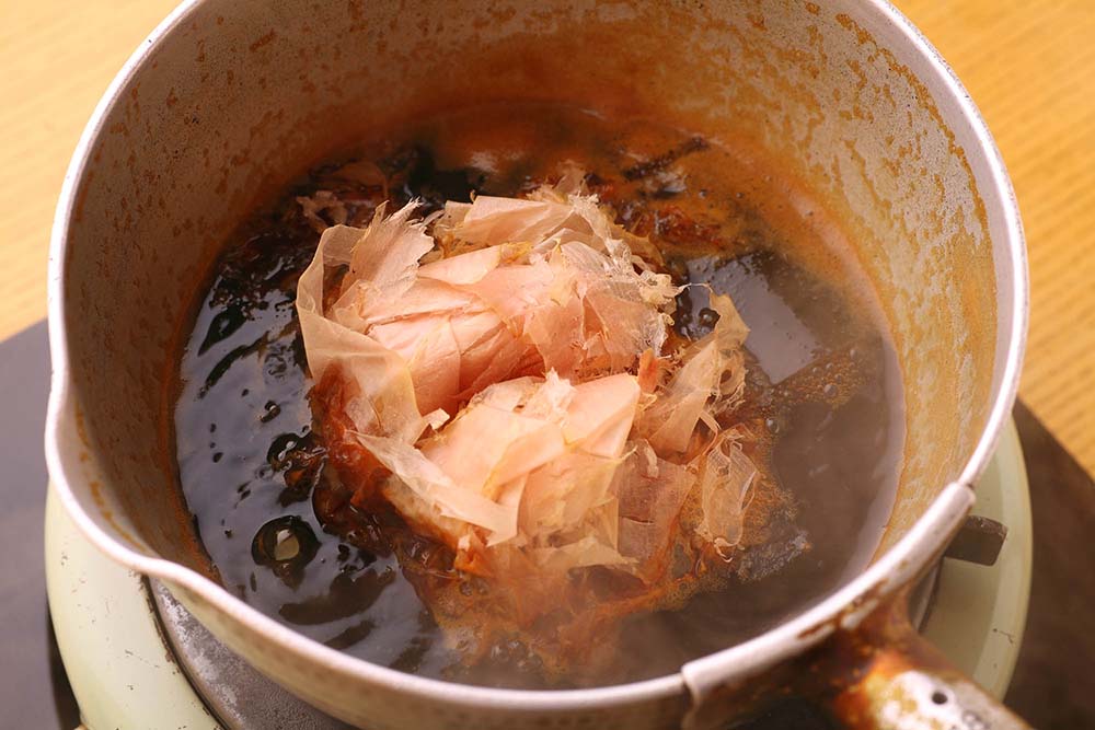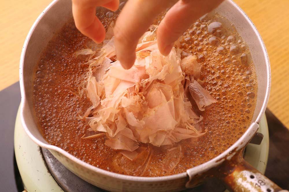 鍋が沸いたところに花がつおを落とし、火を止める。