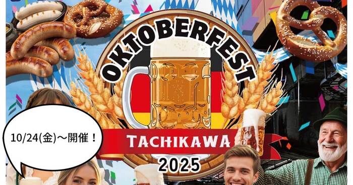 【入場無料】いったい何年ぶりなんだ!?ドイツビールの祭典「オクトーバーフェスト2025 立川立飛」が10/24(金)~11/3(月・祝)に立飛駅前広場に開催されるみたい