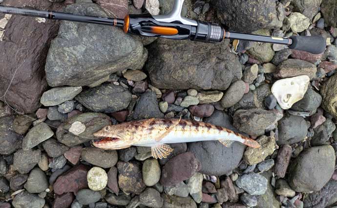 さらに歩を進めて護岸沿いに歩いていくと、大きなアオヤガラが捨て石の上でのんびり泳いでいるのを発見。これは食わせきれなかったが、それにしても驚くほど魚種が豊富だ。