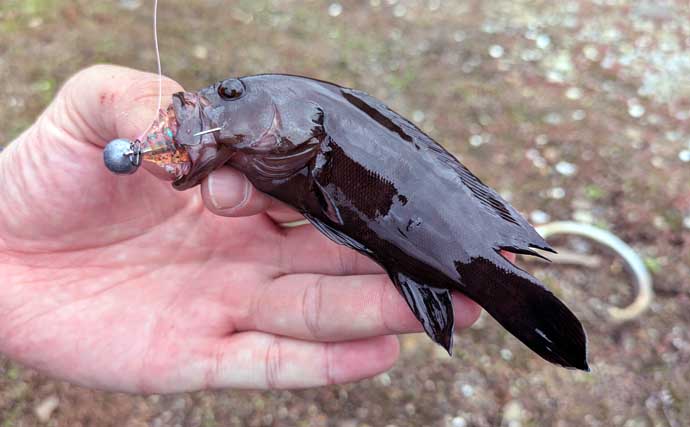 この1匹で大いに盛り上がったが、さすがにこのサイズの連発はなく再びランガンで探り歩く展開に。沖も足元も丁寧に探っていた松尾さんから「ニセクロホシがいますよ」との声。