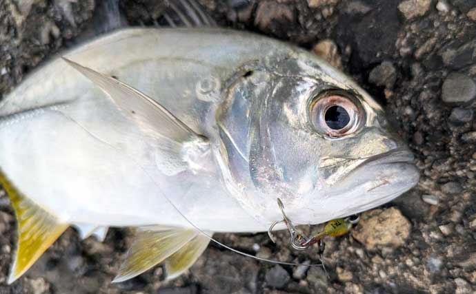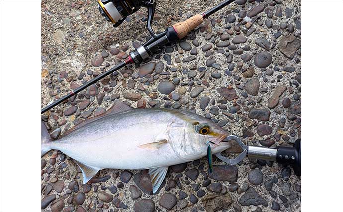 ライトソルト五目といっても、やはりメインとなるターゲットは存在する。この時期であればメッキだ。黒潮に乗って南海からやって来る死滅回遊魚だが、近年の温暖化で冬を越して大型化する個体もいるようだ。