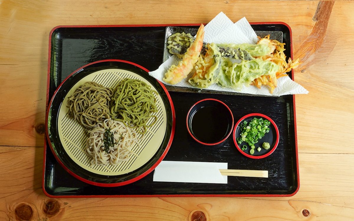 「仁淀川ならではのものを楽しんでほしい」という店主の思いから、普通の蕎麦に加えて「煎茶」と「ほうじ茶」を練り込んだ蕎麦の3種類がある。