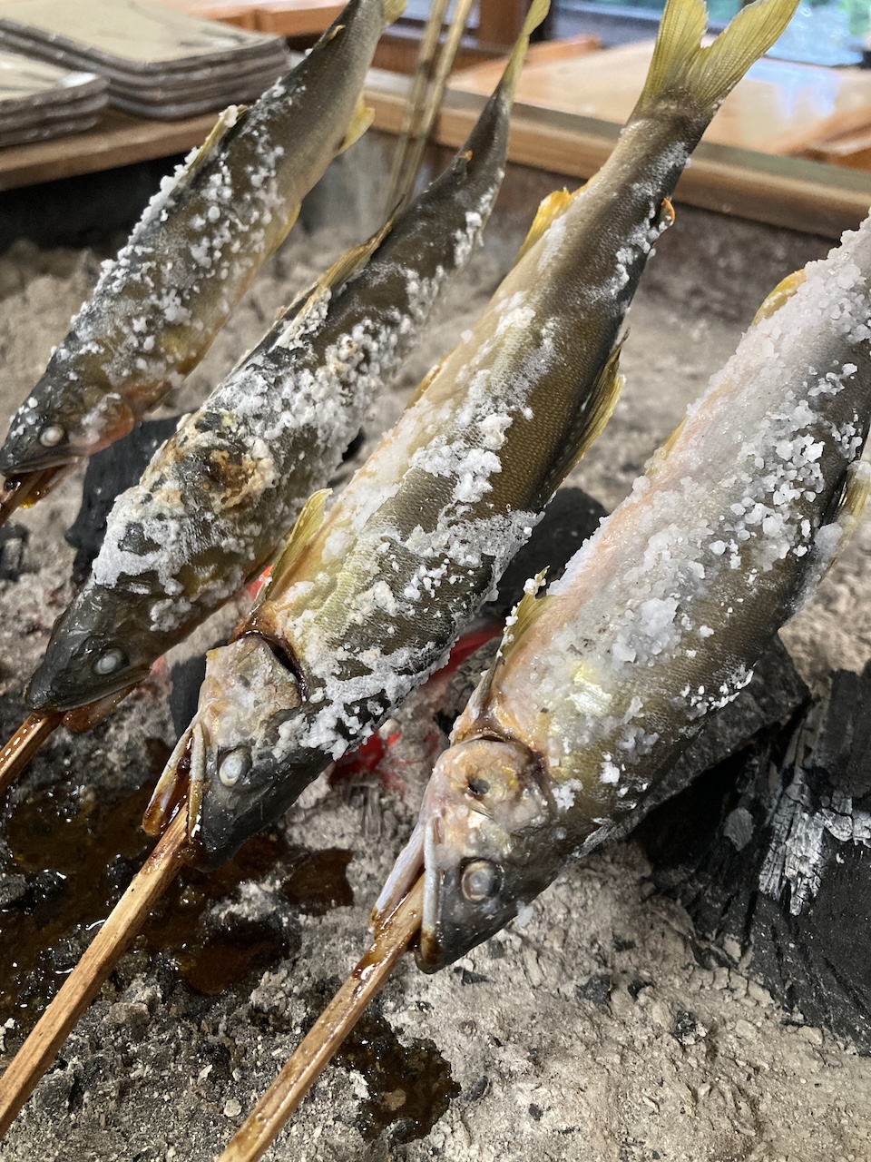 また、6月~11月限定で店主が毎朝釣ってくる鮎の塩焼きがラインナップに加わる。