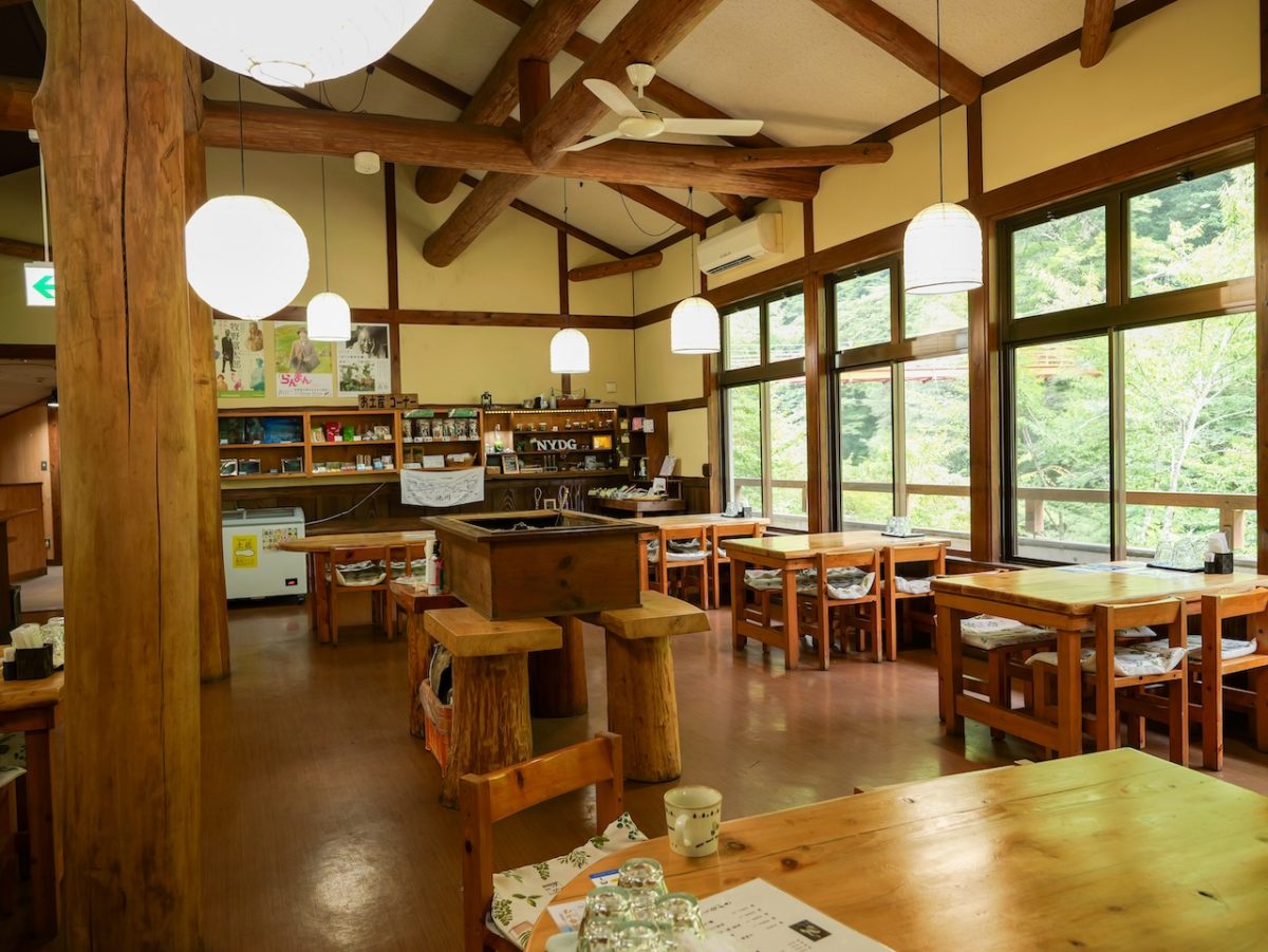 店内の大きな窓からは、渓谷ならではの豊かな緑が望め、まるで一枚の絵を眺めているかのよう。