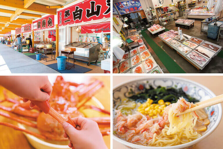 糸魚川市・能生の海岸沿いにある道の駅。こちらのイチオシは、能生特産の紅ズワイガニをとことん楽しめる「カニ屋横丁」。7軒のカニ専門店が軒を連ねる日本海側随一の紅ズワイガニ直売所で、購入したカニを桶に入れてその場で味わえるスタイルが好評。肉厚でジューシーな脚の身と濃厚なカニみそは、新鮮だからこそ堪能できるおいしさ。