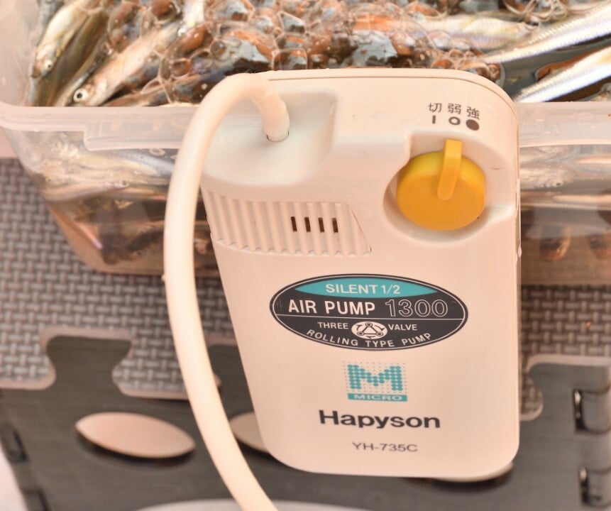 美味しくいただくコツは、「糞をしっかり出させて、鮮度のよい状態で持ち帰ること」と二橋さん。釣りが終わるまではエアポンプを使って魚を生かしておく