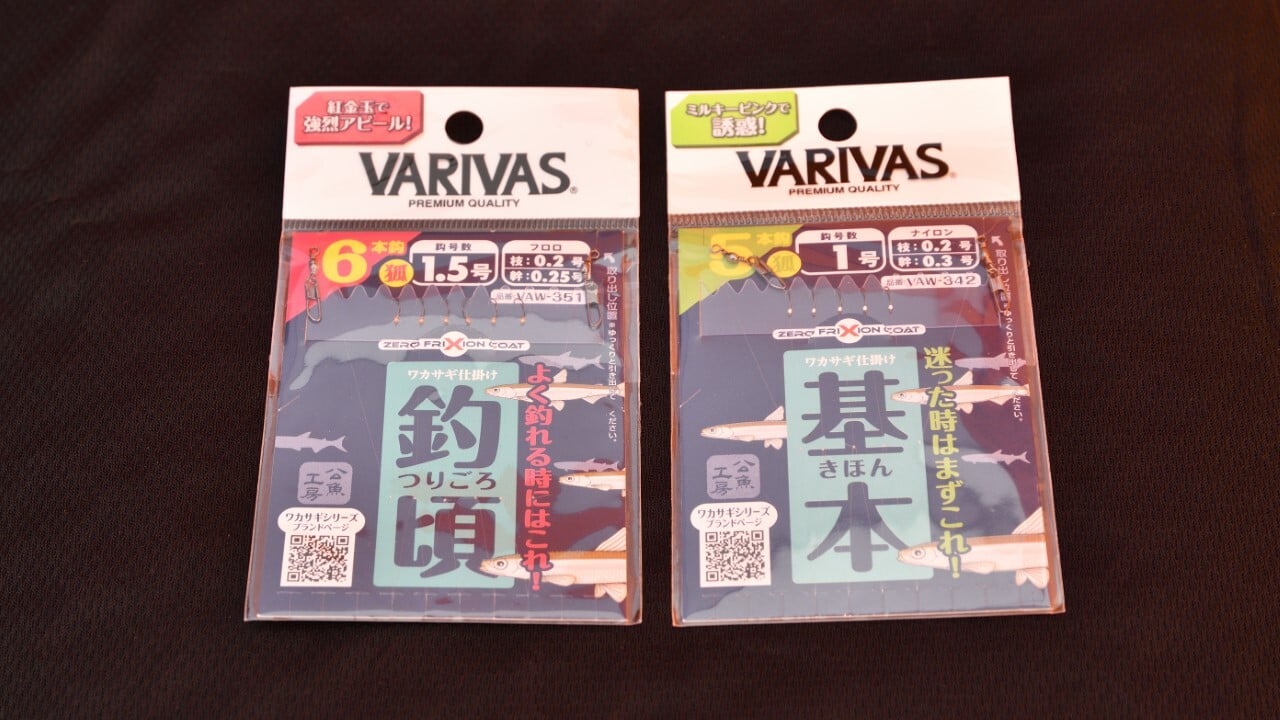 バリバス『釣頃』と『基本』の1~1.5号を多用する。かなやま湖のように7~8cmのワカサギがアベレージサイズの場合、1号未満の小さいハリは「乗りが悪くなる気がする」とのこと。下バリはオーナーばり『時短ワカサギ』など