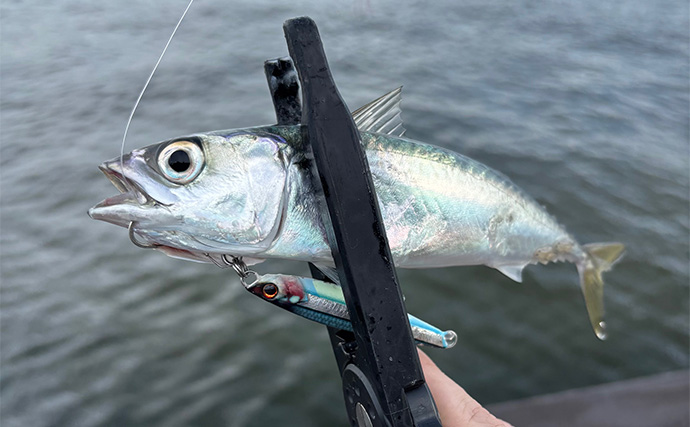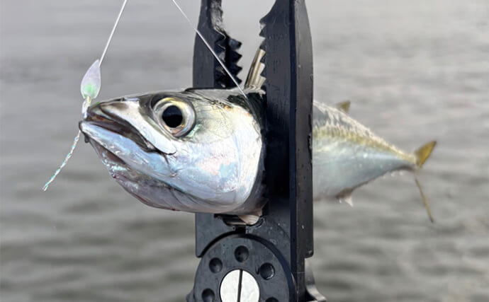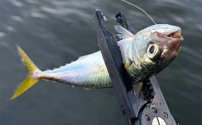 サイズは20cm程度と中型足らず。結果的に何尾釣ってもこれ以上大きくはならなかったので、今はこのサイズの金太郎飴ということだろう。だがジグサビキとジグに連掛けするとかなりの引きで、なかなかスリリングな釣りを楽しむことができた。何よりアタリが多いことがうれしい。