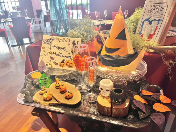 入口にはスタッフ手作りのハロウィンの飾り付けが施されており、可愛らしいディスプレイがお出迎えしてくれました。