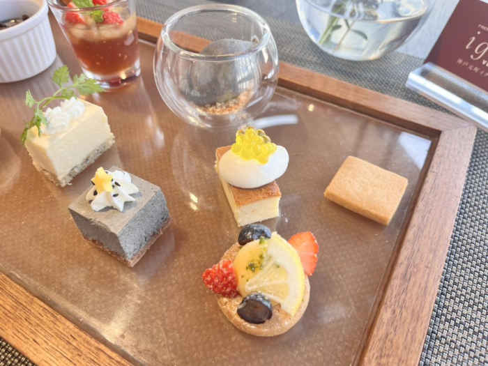 そしてもう半分は、右手前から時計周りに”ミニタルト”・”黒胡麻ムース”・”黒胡麻アイス”・”バニラクッキー”・”チーズケーキ(キャビアロリ入り)”です。どれも可愛いサイズ感で食べるのがもったいないくらい。