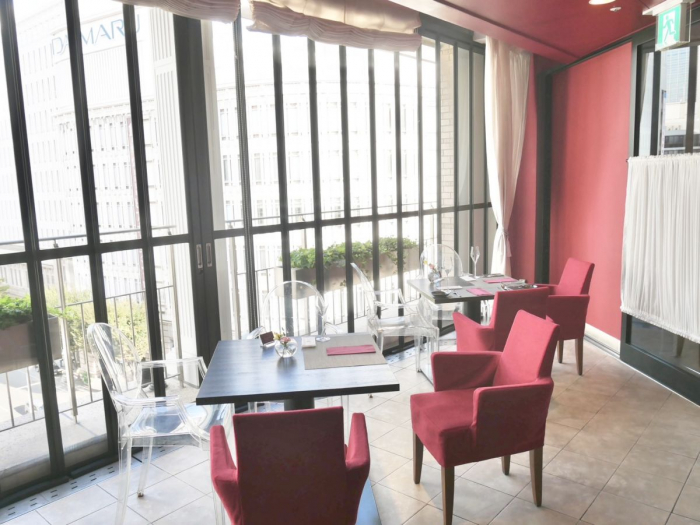 窓際にはインナーテラス席が設けられており、神戸・元町の街並みを見渡せる特等席。