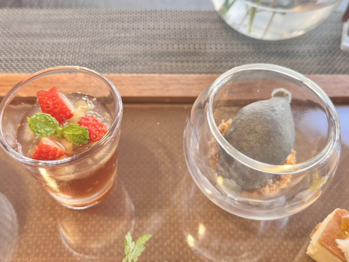 「紅茶のジュレ」や「黒胡麻アイス」は、ひんやりと、濃厚なスイーツの合間にぴったり。味のバランスを整えながら、最後まで飽きずに楽しめます。