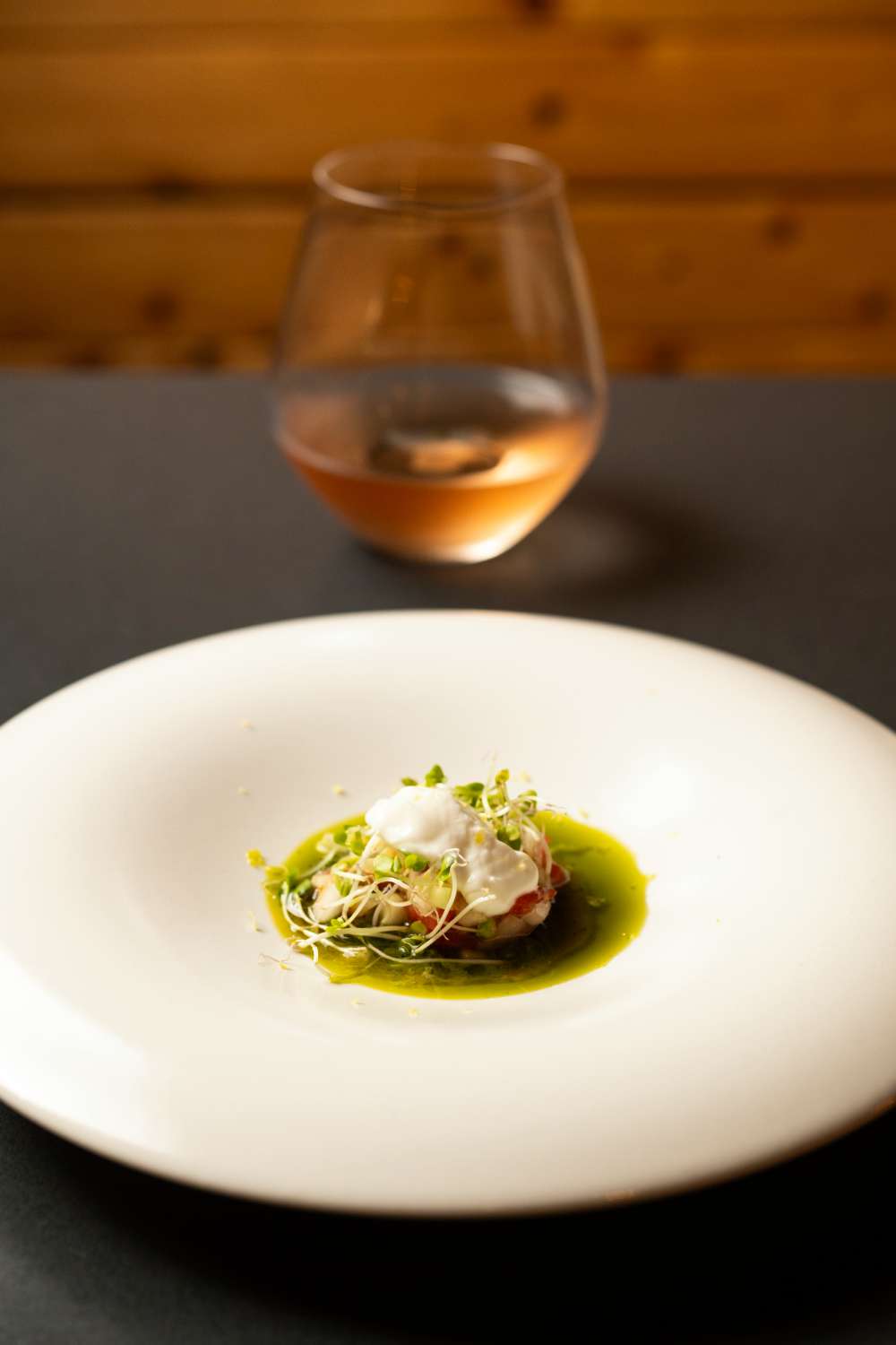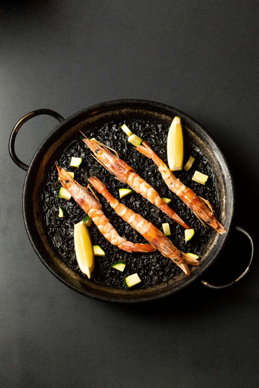 主軸となるスペイン料理は、現地のスタイルになぞらえてクラシカルに。シェアにもぴったりなイカスミのパエリア3600円は口に運ぶと出汁の旨味がこれでもかと広がる。「スペイン人の師匠に、出汁は料理のハートだと教わりました」と、店主の足立悠さん。一方、季節の果物や異国のエッセンスでひねりを加えた日替わりのフュージョン料理に、その自由な感性が光る。「ワインに合う食事と空間作りを心がけています」。